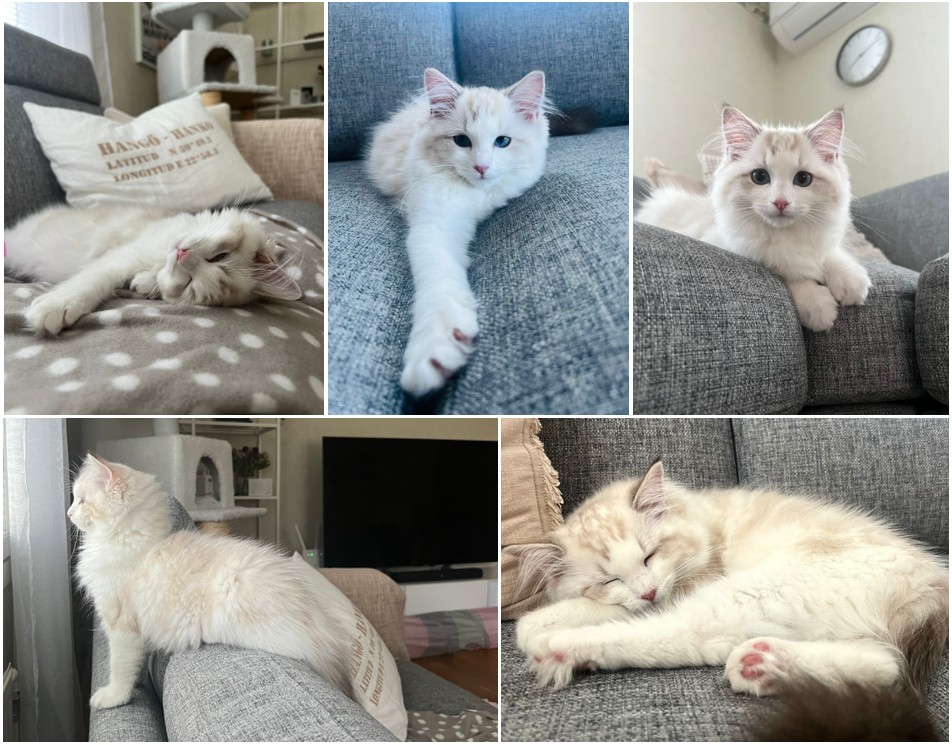 Humdolls Ramblin Rose muutti Nokialle Piian perheeseen Kinuski-ragdollin kaveriksi ja uudessa kodissa on lisĂ€ksi myös koiria ja lintuja. đ HĂ€n sai nimekseen Vanilja. Perhe kertoo Vaniljan olevan nautiskelija, joka lepĂ€ilee sĂ€ngyssĂ€ ja nauttii takkatulen loimusta. đ HĂ€n on myös kova tyttö auttamaan mm. sĂ€ngyn petaamisessa ja tulee myös mukaan saunaan. Vanilja on kaikessa mukana ja joulun aikaan hĂ€n kuulemma osoittautui myös joulun nautiskelijaksi ja jĂ€rjesteli perheelle kuusenpallojen etsintÀÀ varsin usein. đ